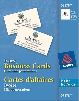 Avery® Inkjet & Laser Business Cards Inkjet business cards, 2” x 3.5” 67933-08371 White, 85 lbs. 250/ev 67933-08376 Ivory, 80 lbs. 250/ev 67933-03270 Laser business ... View Doc
